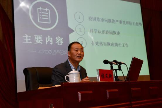 云南省教育廳后勤保衛(wèi)處處長付甫劍以《全面貫徹十九大精神確保學校安全穩(wěn)定》為題做專題輔導